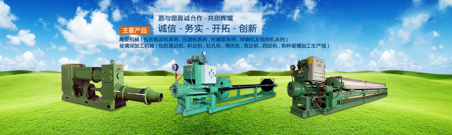 主要產(chǎn)品有:陶瓷機(jī)械(包括練泥機(jī)系列、壓濾機(jī)系列、柱塞泵系列、球磨機(jī)及攪拌機(jī)系列)玻璃深加工機(jī)械(包括直邊機(jī)、斜邊機(jī)、鉆孔機(jī)、清洗機(jī)、雙邊機(jī)、四邊機(jī),各種玻璃加工生產(chǎn)線(xiàn))